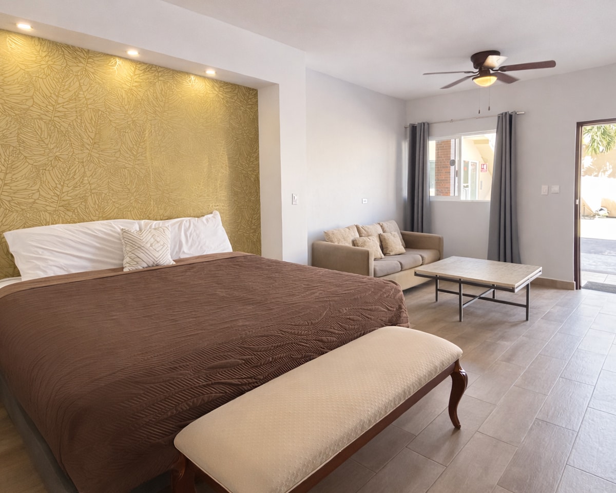 Bem-vindo ao coração de San José del Cabo! Nosso quarto king-size no centro da cidade oferece uma experiência única, combinando conforto e conveniência em um ambiente inigualável. O quarto é um lugar de distinção e conforto, com uma cama king-size garantindo noites tranquilas. Roupa de cama e travesseiros de qualidade são escolhidos para o seu máximo conforto. Da sua janela, você pode desfrutar de vistas pitorescas de San José del Cabo.