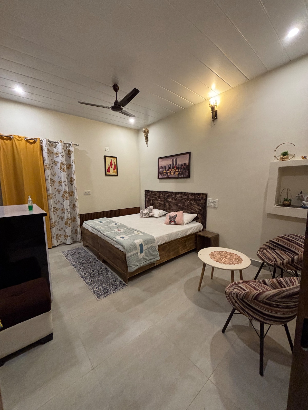 Bem-vindo ao Vrinda Villas Studio, um retiro de luxo inteligente perto dos famosos marcos de Vrindavan: Prem Mandir (2 km), ISKCON (2,5 km) e Banke Bihari (3 km) Desfrute do conforto de um banheiro moderno, Wi-Fi de alta velocidade e uma pequena e bela varanda. Localizado em um condomínio fechado com parques, cafés e mercearias nas proximidades. Self check-in para uma estadia perfeita.