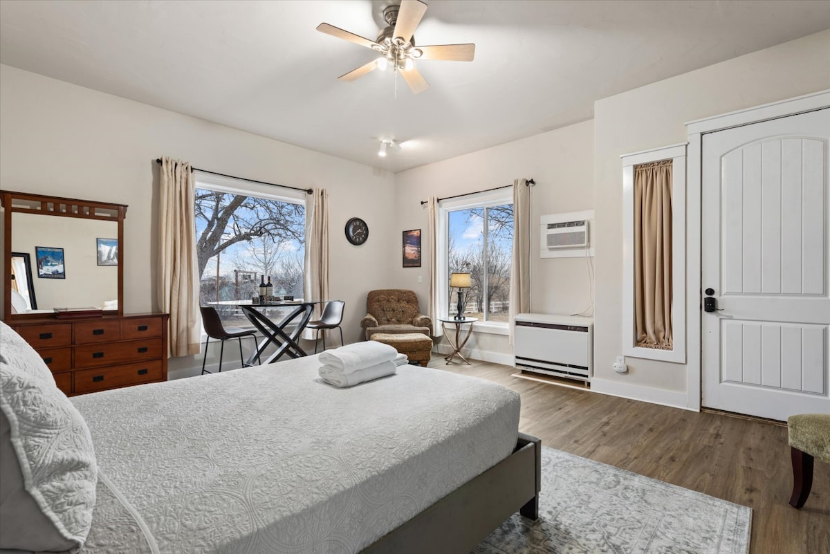 Este lugar especial fica perto de tudo e é ideal para planejar sua visita. Originalmente construído em 1900, este chalé estúdio recentemente reformado está confortavelmente mobiliado e abastecido com todos os itens básicos. Com uma cama king size DreamCloud e um sofá-cama de tamanho completo, pode acomodar até 4 pessoas. Convenientemente localizado a poucos quarteirões do centro da cidade, Leo Adler Pathway, parque da cidade e lojas. A cama e os brinquedos do cachorro, juntamente com o grande quintal cercado, certamente farão seu cão se sentir em casa também!
