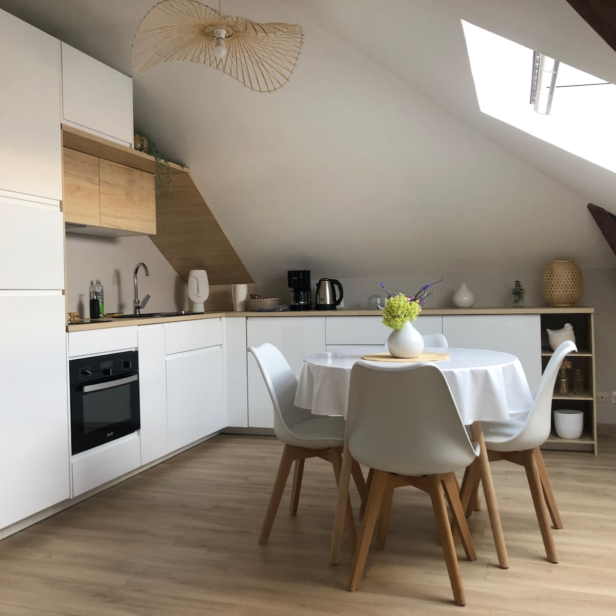 Belo anexo de 20 m² localizado ao lado da nossa casa, em uma vila tranquila a 5 minutos de carro do centro de Charleville e a 5 minutos a pé da universidade. Ideal para visitar o departamento e desfrutar de eventos (Cabaret Vert, World Puppet Festival). A acomodação está equipada com uma cozinha com geladeira, fogão, cafeteira, forno, micro-ondas. Parada de ônibus em frente à casa e estacionamento gratuito na rua. Pequeno terraço privado.