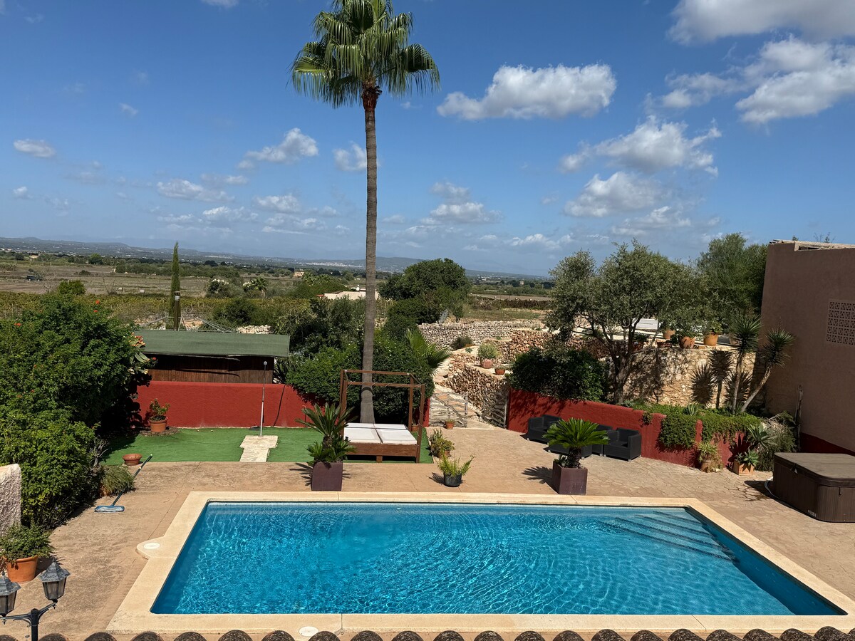 Esta encantadora e típica casa rural maiorquina tem uma piscina e está cercada por um jardim mediterrâneo generalizado. Está idealmente situado em uma parte tranquila e ensolarada da cidade, a apenas 20 minutos a pé do centro da cidade e a apenas 3 km da praia. A casa oferece dois quartos de cama e dois banheiros que acomodam confortavelmente quatro adultos. Como passamos muito tempo com nossa filhinha aqui, ficamos felizes em compartilhar uma cama de bebê e uma cadeira alta com você. A escada no primeiro andar tem uma barreira.