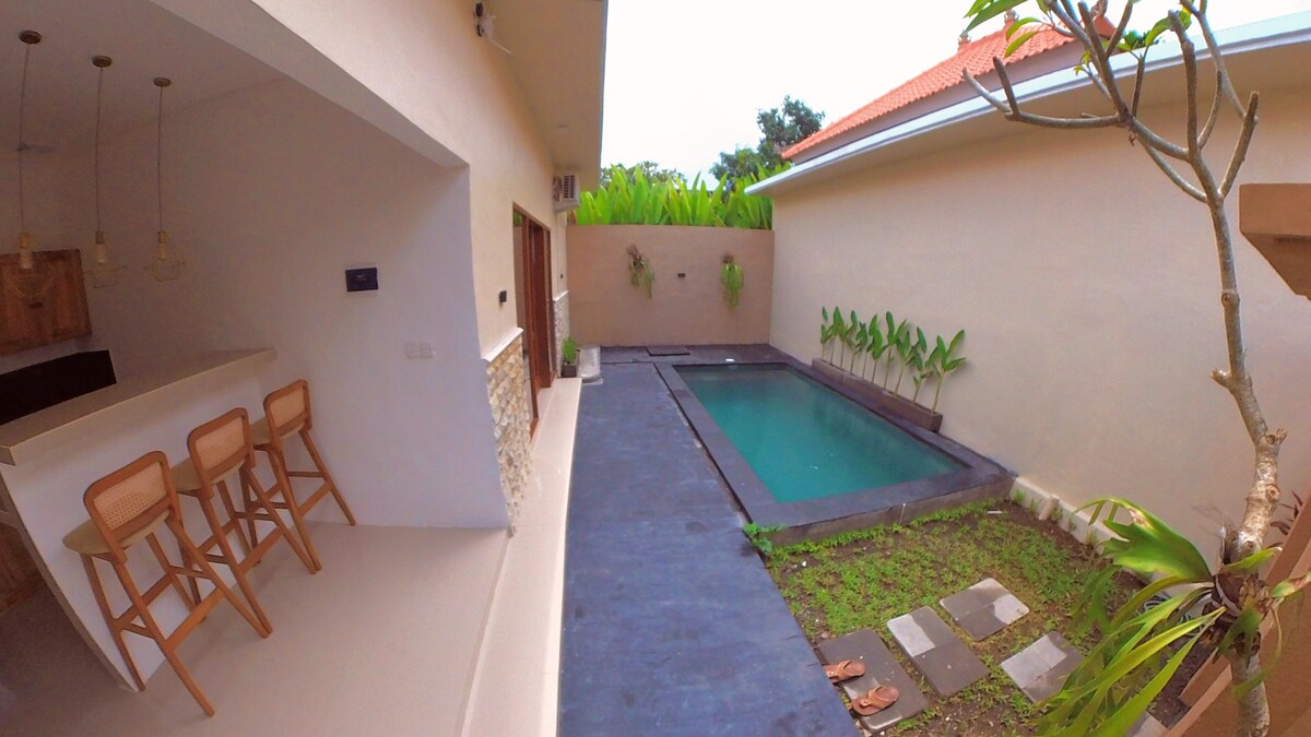 Angga Sari Villa promete uma experiência verdadeiramente rejuvenescedora para viajantes que procuram uma estadia moderna, descontraída e confortável. Você vai se sentir em casa no momento em que chegar aqui❤️ * 2 quartos e 2 banheiros com produtos de higiene pessoal * Cozinha totalmente equipada * Área de relaxamento ao ar livre para aproveitar o clima quente de Bali * Piscina privativa com uma área de 3,5x6 e uma espreguiçadeira enquanto desfruta da autêntica culinária indonésia * Wi-Fi de 100 mbps e smart TV
