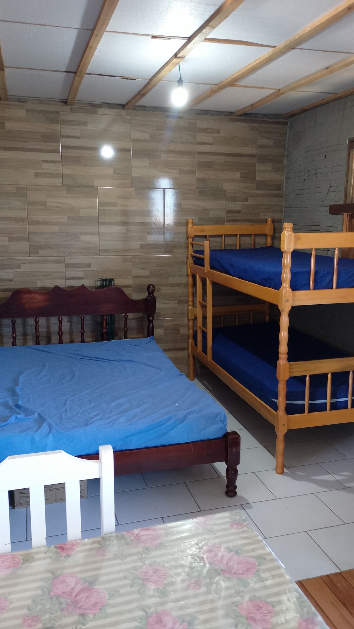 quarto 1 com uma cama de casal e uma de solteiro, quarto dois com uma cama de casal, na sala dois sofas que abrem e viram cama de casal, pátio amplo com churrasqueira campeira de tijolos no chão, local e familiar tranquilo com ótima vizinhança silenciosa de forma que não se Coloca som alto, 15/20 minutos de caminhada para chegar ao centro, casa totalmente mobiliada, precisa levar forro de cama e travesseiro.