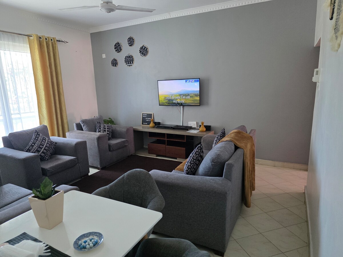 This 1-bedroom apartment is a seven-minute drive from the beach and offers a blend of comfort and convenience for your coastal escape. Amenities: ✔ Free On-Site Parking ✔ High-Speed Wi-Fi & Netflix ✔ Prime Location: * 7-minute drive to the Beach * 7-8 minutes to City Mall & Nyali Center * 7-10 minutes to top resorts, including PrideInn Paradise, Sarova Whitesands, Neptune Beach Hotel, Voyager Beach Resort, and more The ambiance and view make it the perfect spot to unwind under the sun.