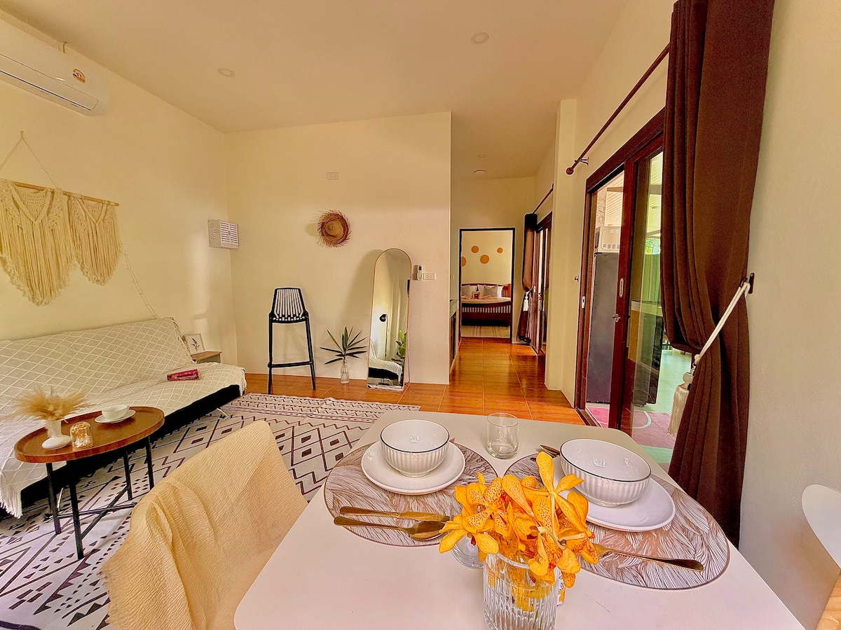 Seu refúgio tropical perfeito 🌿 Espaçosa, tranquila e cercada por vegetação, ela foi projetada com um quarto grande e uma área de estar generosa para que você possa realmente relaxar. Aqui, as manhãs começam com uma luz suave que passa por entre as folhas das palmeiras. As noites são tranquilas e silenciosas. A casa fica em um resort tranquilo, com uma distância confortável entre as acomodações e acesso a uma piscina compartilhada que geralmente é silenciosa e tranquila. Isto não é uma casa de festas. É um espaço para recarregar as energias, desacelerar e curtir a vida na ilha.