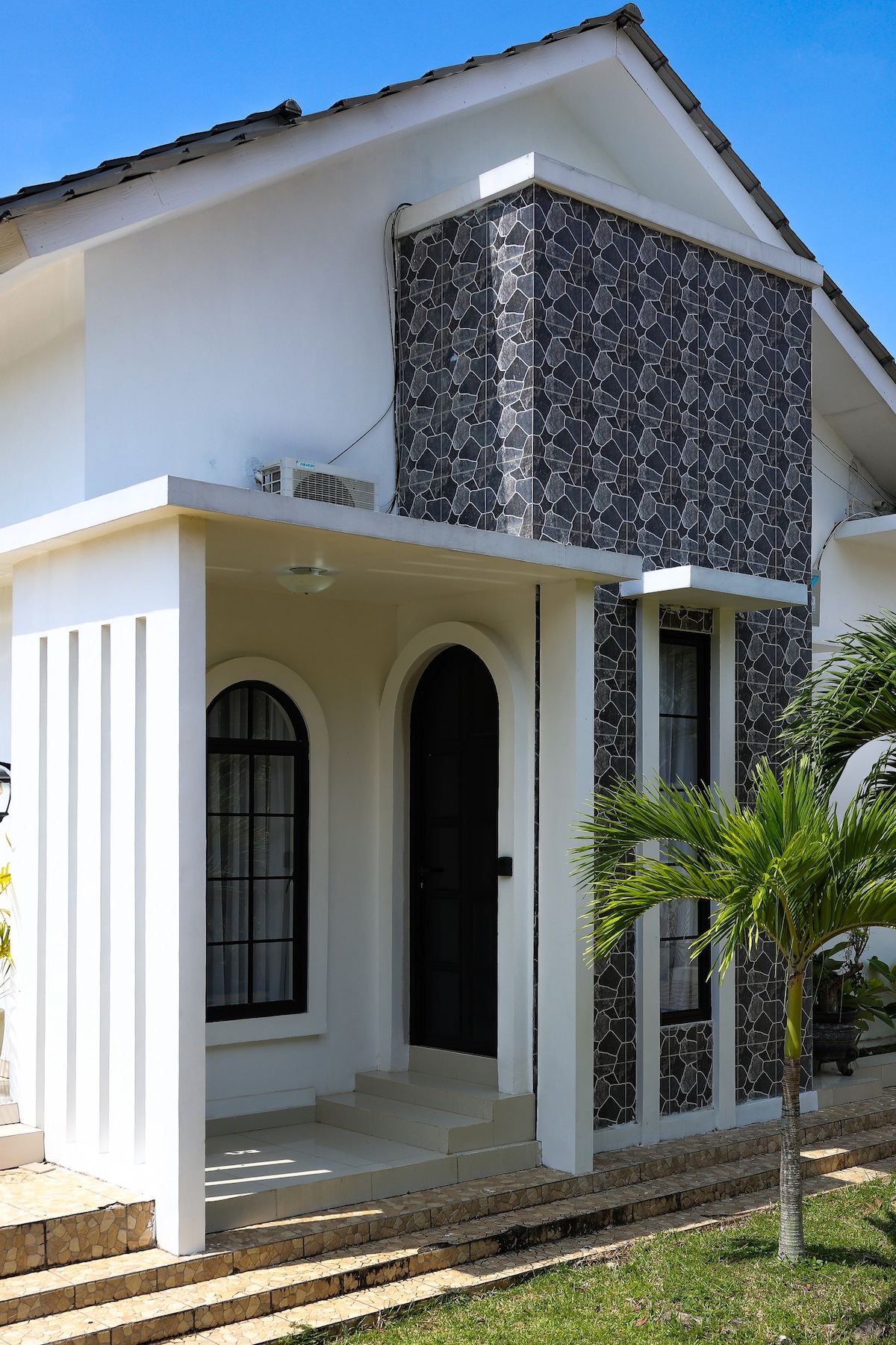 Esta casa arquitetônica moderna-tropical-smimalista é uma propriedade recém-concluída em junho de 2018. Tem 2 andares onde o andar superior serve como uma área privada na forma de um quarto, e o piso térreo serve como uma área pública na forma de uma cozinha (completa com equipamentos), uma sala de jantar (com dispensador), uma sala de estar, um banheiro e um terraço. Além disso, a casa fica perto do Puncak Mall e do centro culinário a uma distância de aproximadamente 250 metros.