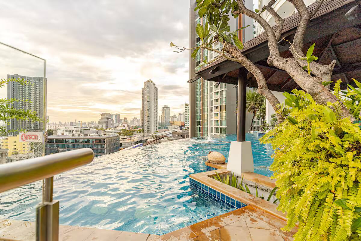 1BR Bangkok perto de BTS vista para a piscina aconchegante
