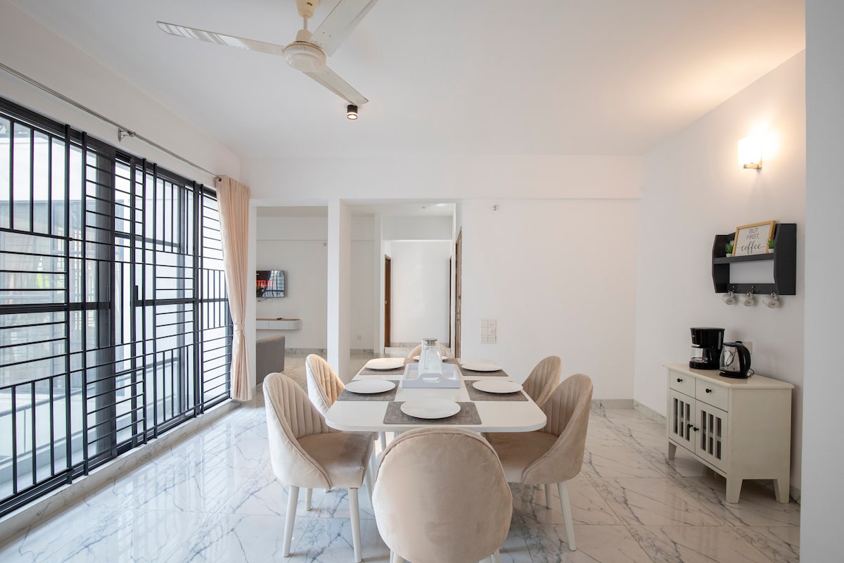 Bem-vindo ao seu retiro sereno em North Banani, Daca! A apenas 5 minutos a pé do Hotel Sheraton, do supermercado Banani e de Gulshan, nosso apartamento totalmente mobiliado acomoda até seis hóspedes. Desfrute de três quartos aconchegantes, uma cozinha moderna, uma área de jantar e uma sala de estar relaxante. Saia para a sua varanda privada para respirar ar fresco ou utilize o mini espaço de trabalho para produtividade. Nosso apartamento oferece um ambiente tranquilo para viver. Faça sua reserva hoje e desfrute de uma escapada encantadora em Banani!