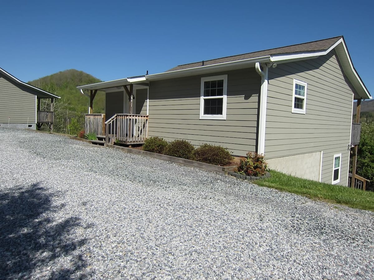 Esta é uma nova construção disponível para reservar para a sua escapada na montanha! Existem 3 quartos, 2 banheiros e um telhado cheio de painéis solares. A casa tem belos pisos de madeira, balcões de concreto, azulejos de metrô, eletrodomésticos de aço inoxidável e mobiliário moderno. Os hóspedes vão se apaixonar pela varanda envolvente e pelo som do riacho ao fundo. Toda a energia usada no local é gerada de forma limpa e renovável. Para proprietários de veículos elétricos, uma tomada de 50 amperes está localizada na unidade para carregar.