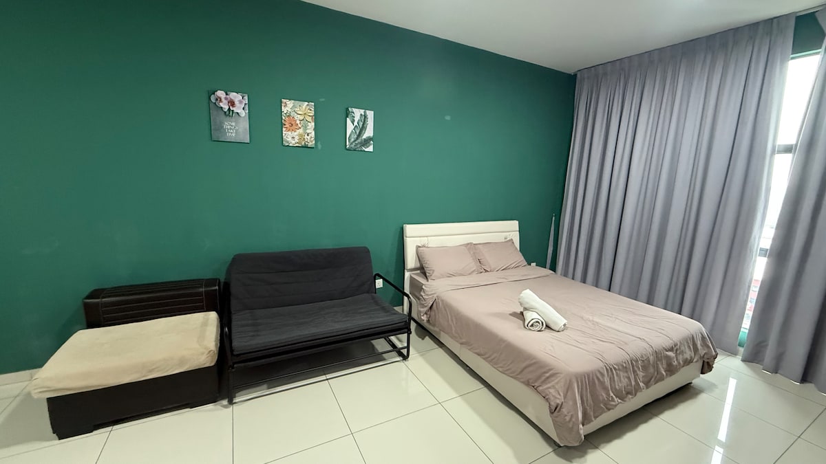 Desfrute de um retiro confortável nesta suíte. Apartamento estúdio Muji com banheiro privativo, cozinha acoplada e local de trabalho adequado para casais e famílias. Renovado com design de Tatami de madeira, acabamento de alta qualidade e armários. Um espaço encantador para relaxar após um dia agitado, seja de trabalho ou lazer. A menos de 20 minutos de carro do KLIA / KLIA 2 / Mitsui Outlet. A uma curta distância a pé de uma variedade de restaurantes e lojas de conveniência, como 711, Starbuck, lavanderia, comida tailandesa e até clínica 24H e barraca de mamak!