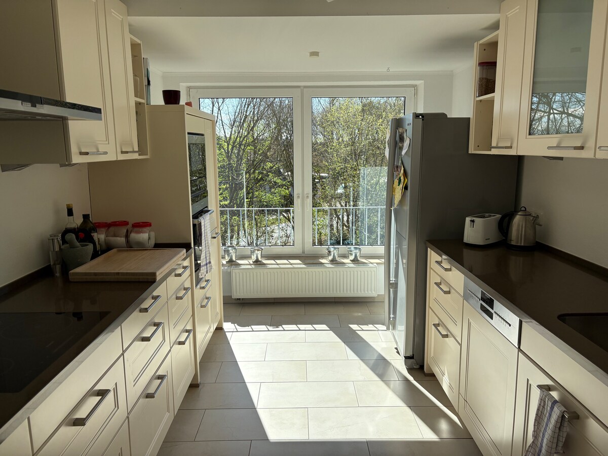 Renovamos recentemente nossa casa em novembro de 2024 É uma moradia geminada espaçosa e tranquila com quatro quartos em três andares com cerca de 125 metros quadrados. Um terraço com jardim e lugares de estacionamento estão disponíveis. Nas imediações fica um supermercado, padaria, farmácia, banco, banco, restaurantes, ponto de ônibus.
