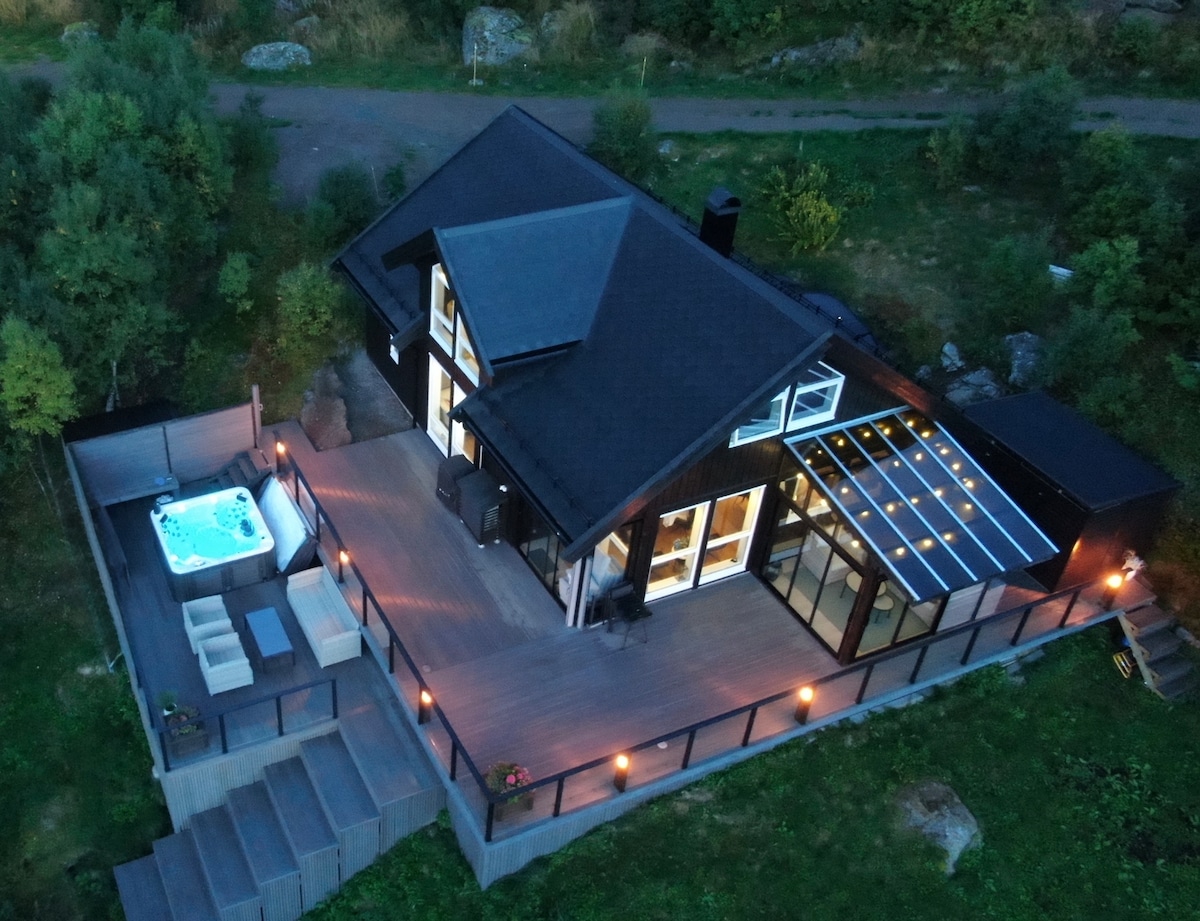 Relaxe com a família neste lugar tranquilo @homefraheime Cabana espaçosa (2019) com boas condições de sol e uma bela vista sobre o Eidsfjord em Vesterålen. 4 quartos, 2 salas, cozinha, banheiro e uma grande varanda com quarto de jardim dão-lhe muitas zonas para desfrutar do silêncio e das férias! A cabana também tem sua própria banheira de hidromassagem que pode ser usada por nossos hóspedes. Base perfeita para umas férias exploratórias em Vesterålen/Lofoten, ou apenas para ficar sozinho e relaxar. A casa tem seu próprio estacionamento, espaço para 2 a 3 carros. (Não RV)