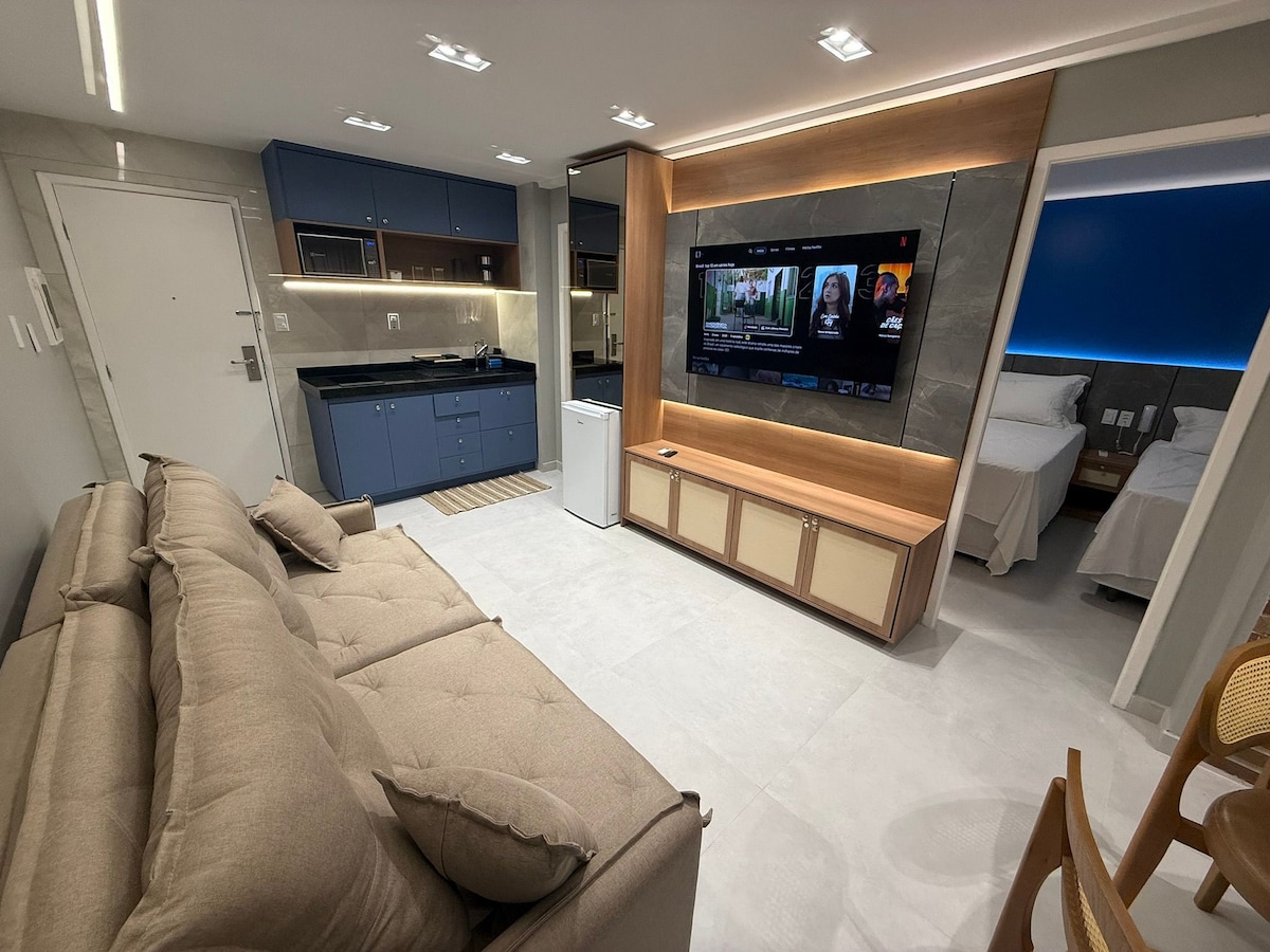 🛏️ Desfrute de uma estadia inesquecível no nosso resort! 1 Quarto,Sala, Cozinha, Varanda, Banheiro. • O QUE ESTÁ INCLUSO: Recepção 24H, Quarto com Ar-Condicionado, TV a Cabo, Frigobar, Guarda Roupa, Varanda, Estacionamento, Piscina com bar molhado, Internet - WI-FI, Chuveiro híbrido (água quente e fria), Kids Club, Copa do Bebê, Salão de Jogos, Fitness Center, Sala de Massagem, Saunas. Obs: Não é permitido o ingresso de animais de estimação de qualquer natureza dentro do Hotel e Condomínio.