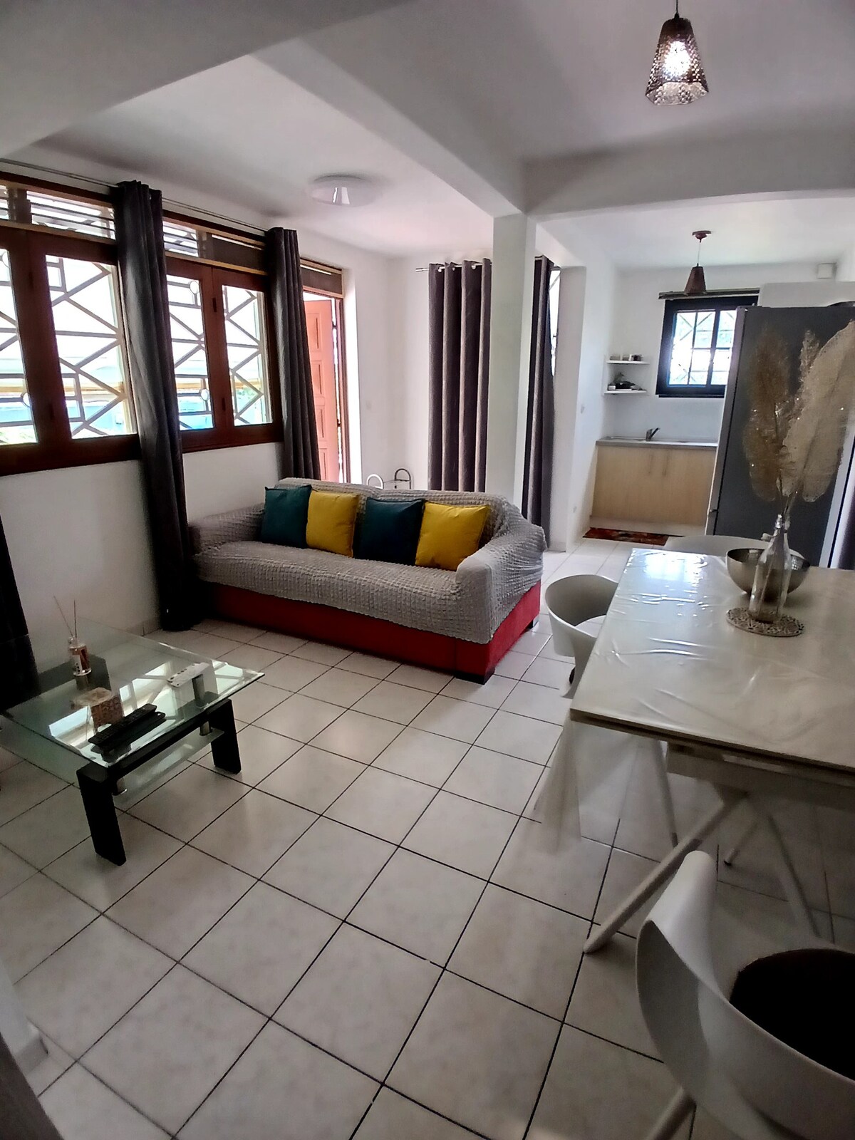 Cet appartement est bien situé, tout confort et totalement équipé. Situé à proximité du centre ville de Basse-Terre, du Fort Delgrès, le parc du champ d'Arbaud accompagné de son cinéma, des sources chaudes, de la Souffrière, et des divers restaurants ou des saveurs créole et j'en passe... Stationnement possible aux abordsdu domicile. Vous pouvez arriver à partir de 13h et départ avant 13h.