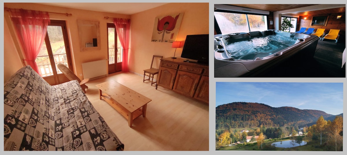 Você está procurando calma, uma vista clara para as montanhas, um lugar na encruzilhada ou várias trilhas de caminhadas e mountain bike no Plateau des 1000 étangs? Então não procure mais, reserve o Gite de l'atelier, uma antiga casa de fazenda renovada apenas para você em um lugar bucólico no coração da natureza, onde você será mimado: 2000 m2 de terreno plano, um terraço com um grande jardim e uma área de jantar com churrasqueira a gás e, acima de tudo, um spa aquecido durante todo o ano. Um verdadeiro casulo!