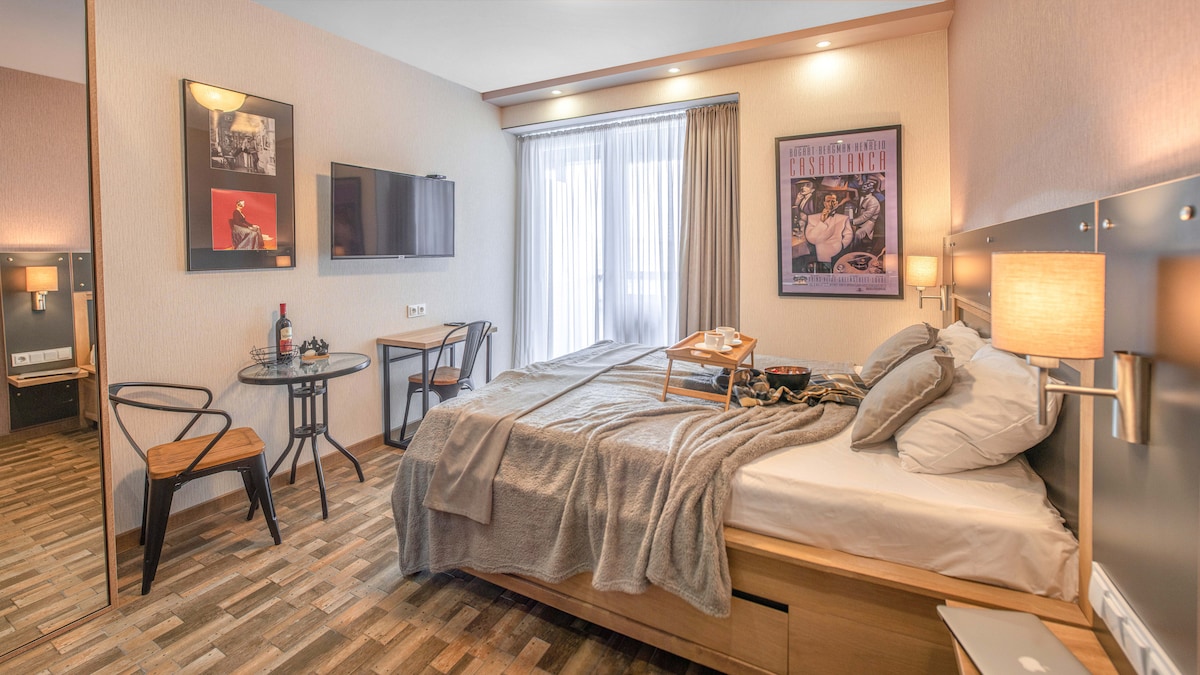 Steps from the sea, built for comfort and calm. Just bring your swimsuit and good vibes. ✔ 2-5 min walk to the beach & vibrant New Boulevard 🏖️ ✔ Gym, sauna & pool in the building — 20% off for guests (extra fee) 🏋🏻♀️💧 ✔ Private parking on request (extra fee) 🅿️ ✔ Comfy bed with blackout curtains 😴 ✔ Full kitchen 🍳 ✔ Washer, iron 🧺 ✔ Cozy coffee shop right at the entrance—perfect for your morning cup ☕✨ Perfect for remote work, creative flow & relaxation 🦦🌊