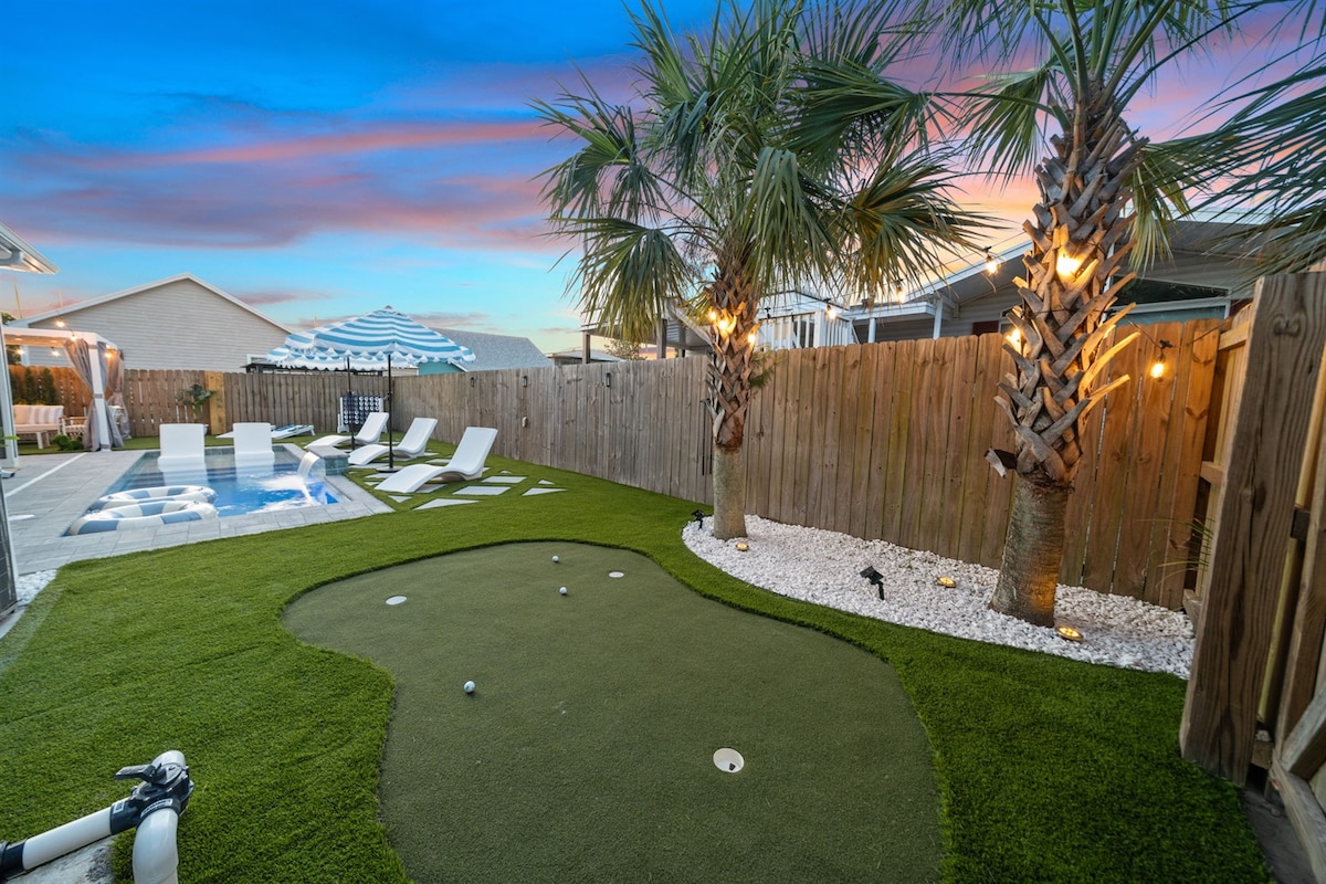 Welcome to our luxury 5BR home in Panama City Beach, sleeping 16+! Backing onto a golf course, enjoy a huge backyard with a pool and waterfall, outdoor kitchen, indoor/outdoor fireplaces, and multiple decks. Home includes an elevator, EV charger (220V), and stunning design throughout. Each bedroom has a private or connected bath. Kids will love the bunk room, Pac-Man arcade, and Tic-Tac-Toe wall. Less than 3/4 of a mile to beach access—perfect for families or group getaways!