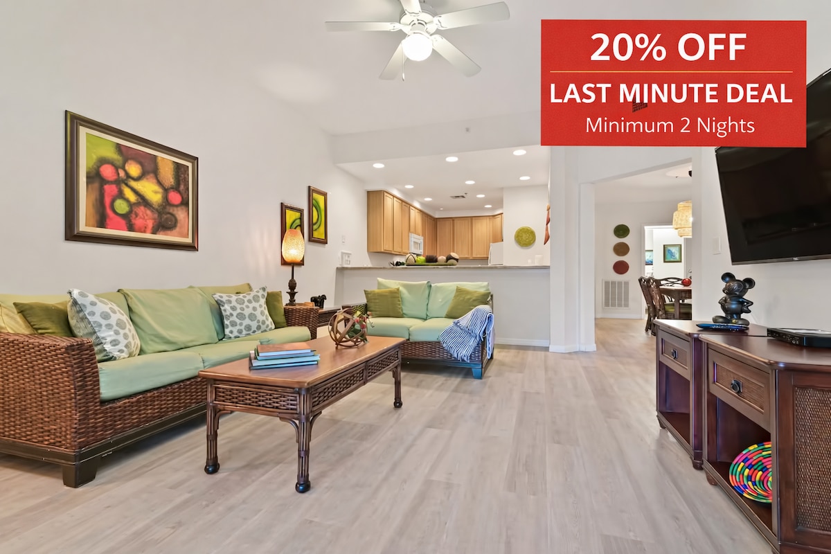 Retiro familiar de 2 quartos a poucos minutos da Disney e dos parques!