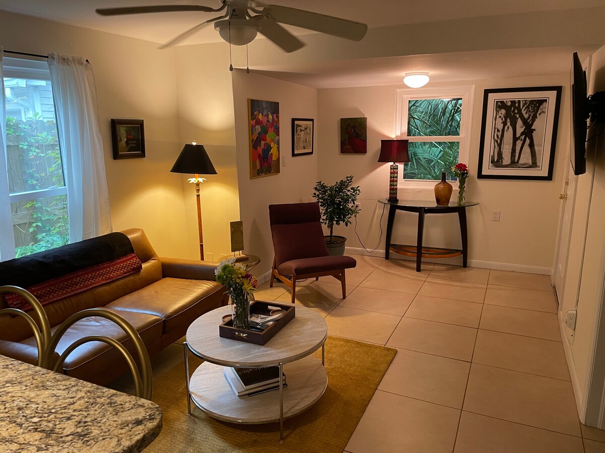 This uniquely decorated guest house is a private oasis with a lovely, private patio. The house is decorated with Latin American art from the owner's collection & travels. Only 11 blocks to downtown and very close to grocery stores, art galleries and all the night light life St. Pete offers. The home has a full kitchen and a very comfortable bedroom for one or two people. A perfect location for those that want to experience a comfortable and relaxing place. Only 12 block walk to Tropicana.