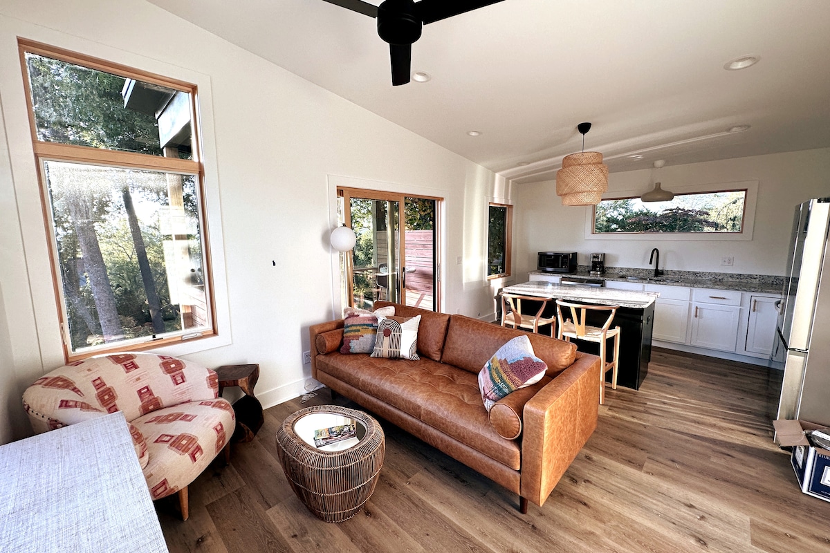 Sua aventura em Asheville começa aqui! Relaxe em um retiro arborizado tranquilo a poucos minutos dos melhores restaurantes, cafés e vida noturna do centro da cidade, e a uma curta distância de carro da Blue Ridge Parkway. Ideal para casais, viajantes individuais e hóspedes de negócios que procuram uma base serena e central após dias cheios de descobertas. Embora nossa área tenha sofrido o impacto de Helene, somos gratos que este espaço tranquilo permaneça seguro, acolhedor e pronto para sua estadia.
