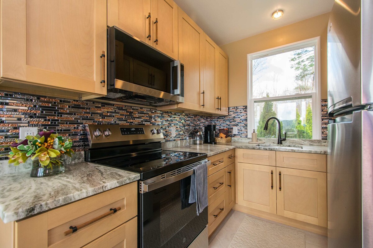 A Fruit Tree Farmhouse é uma casa moderna de 2 quartos/2 banheiros em 2 belos acres. A 18 minutos do centro da cidade e a 15 minutos de West Asheville. Perfeita para famílias, amigos e filhotes, a propriedade está cheia de árvores frutíferas e arbustos floridos. Sala de estar e cozinha em conceito aberto. Os hóspedes têm um lugar perfeito para se reunir depois de um dia explorando as montanhas ou visitando a propriedade Biltmore. Passe a noite com um pouco de grelha e relaxe na varanda ou perto da fogueira com uma vista perfeita do céu noturno.