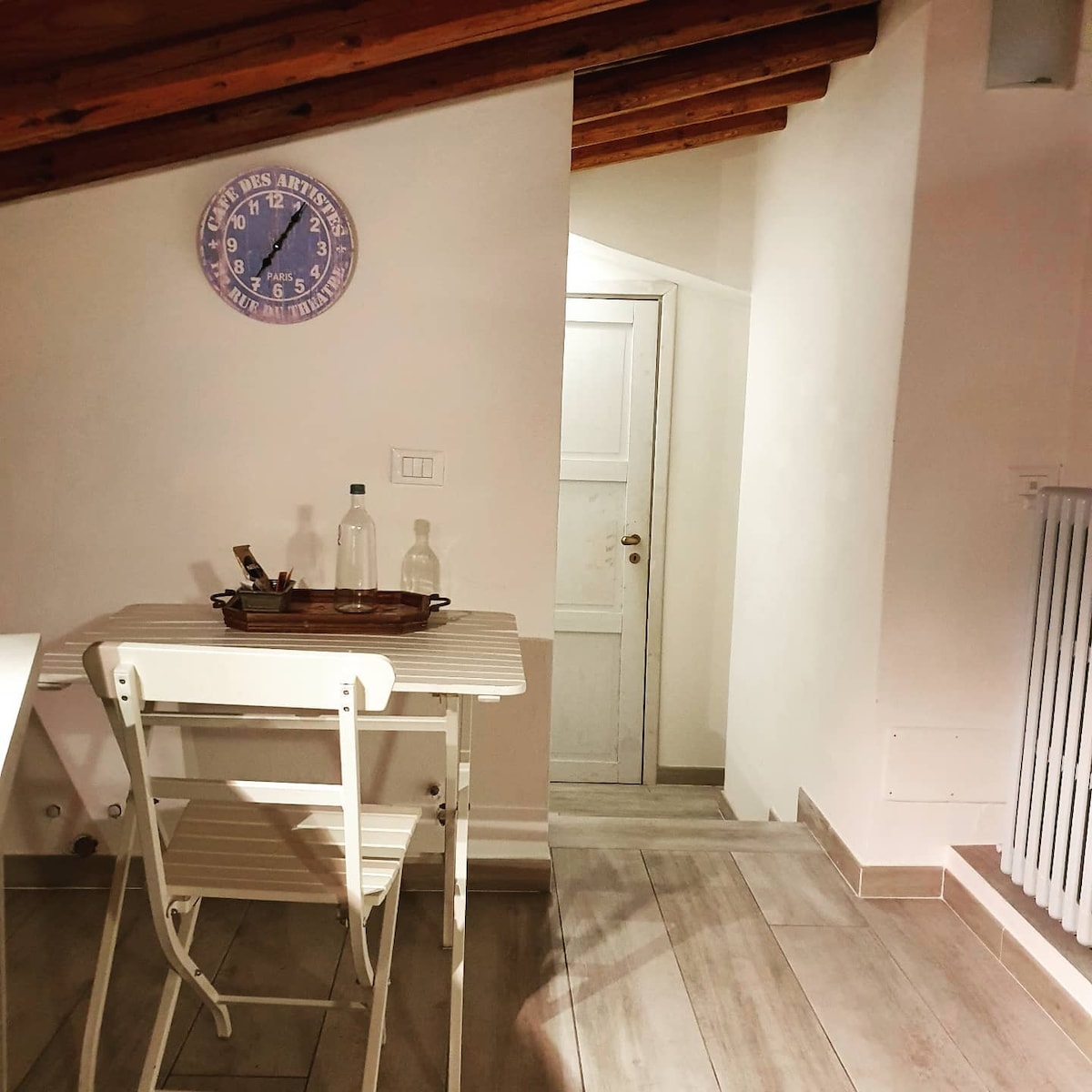 Apartamento estúdio pequeno equipado com kitchenette e serviço de café da manhã. Dentro da acomodação, os hóspedes encontrarão tudo o que você precisa para desfrutar de um doce café da manhã italiano. A capacidade é de quatro adultos com uma cama de casal no loft e um sofá-cama na cozinha/sala de estar. Estamos localizados a cerca de 9 km do Lago de Garda. Oferecemos serviço de aluguel de bicicletas elétricas mediante reserva e dois guias locais também estão disponíveis para passeios personalizados, incluindo comida e vinho.