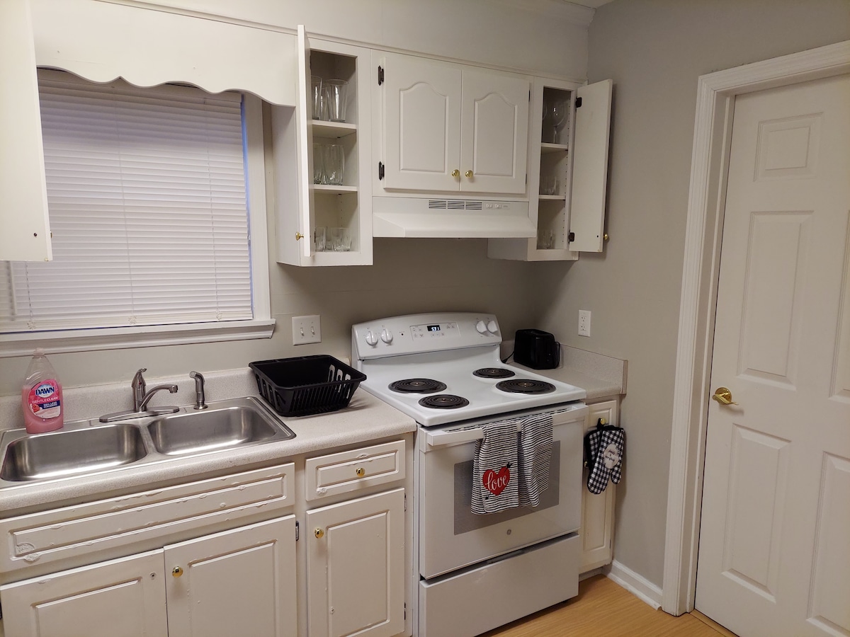 This lovely cottage, located between Aiken, SC and Augusta, GA. It is a 1 bedroom, 1 bath home. Very clean on a quite street. If you are visiting USC-Aiken, North Augusta or Augusta, you will enjoy staying in the cottage duplex. All the essentials will be provided. One double bed, dresser and chest of drawers, one closet, love seat, 2 rocking chairs, and kitchen essentials provided to cook and bake. Fresh sheets and linens are awaiting your arrival.