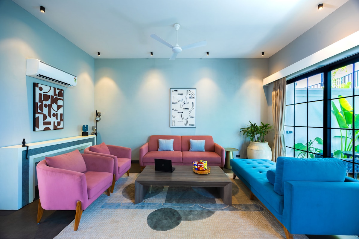 Situada no coração cultural da antiga Goa, esta vila de 3 quartos lindamente decorada é onde o charme atemporal encontra a conveniência moderna. Projetada com um olhar forte para detalhes e estética, esta vila oferece uma mistura convidativa de calor, conforto e serenidade — perfeita para famílias, casais ou um grupo de amigos que procuram relaxar e explorar a verdadeira alma de Goa. Observação: há problemas de rede móvel na região. (Pense nisso como uma desintoxicação dos seus dispositivos)😁