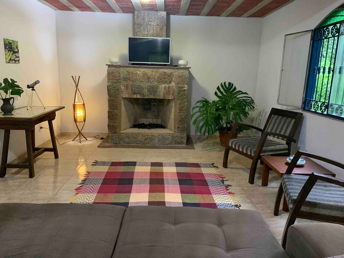 Refúgio rústico na Mata Atlântica com piscina de água natural. Acorde com o canto dos pássaros, relaxe na banheira de hidromassagem com vista para a natureza e aproveite a lareira nas noites da serra. A casa fica a 15 minutos do Centro Histórico de Petrópolis e de Itaipava. Conta com deck com vista para o verde e churrasqueira portátil. A acomodação pode receber até 4 hóspedes (possibilidade de um 5º hospede à consultar) Aceitamos até 2 pets de pequeno ou médio porte.