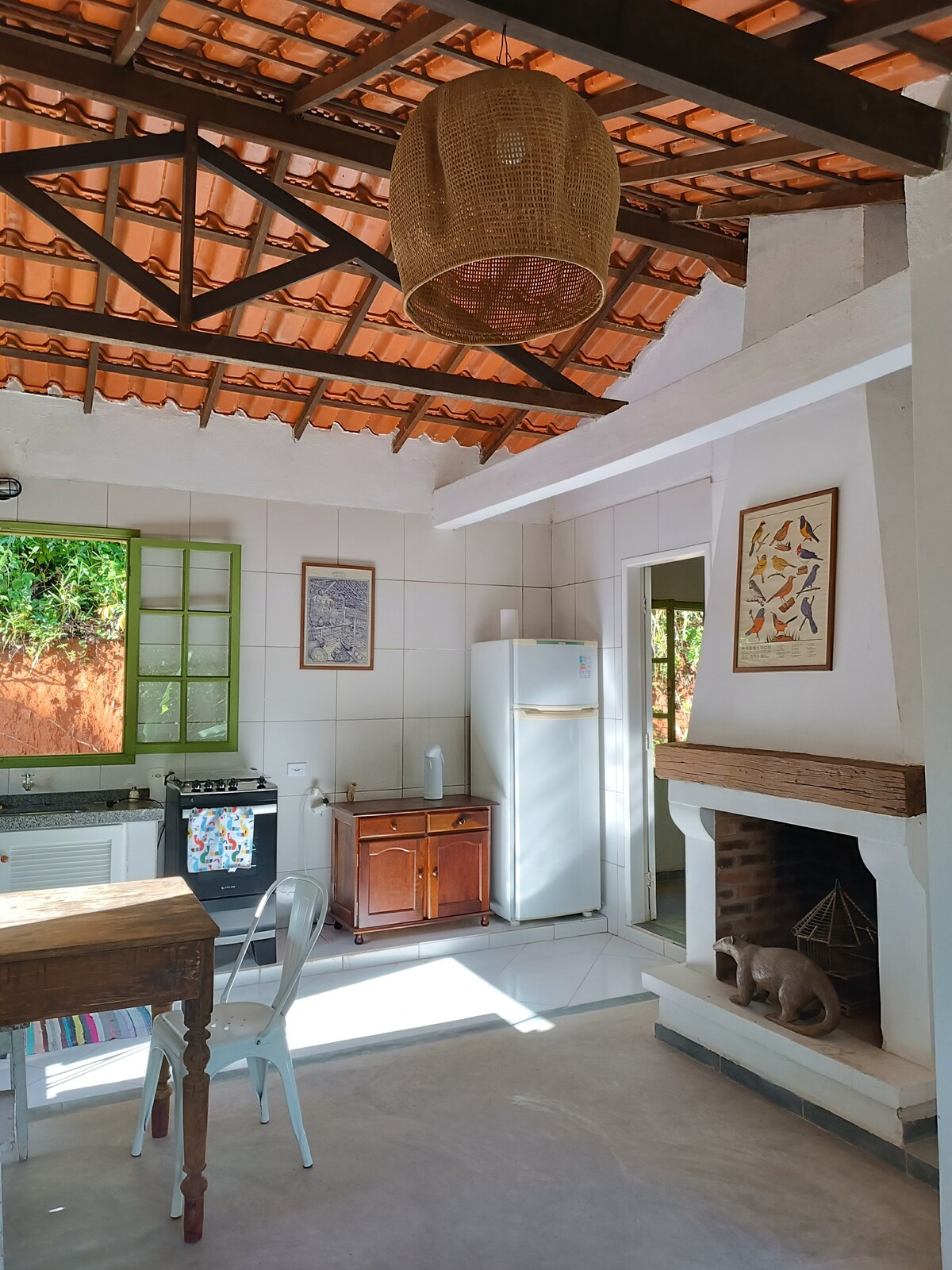 Uma deliciosas casinha de campo para fugir do estresse da cidade. A casa disponível é a menor, mas completamente independente que inclui também um cineminha particular com um telão de 180 e cadeiras com encosto automático. O hóspede terá direito a todas as dependências externas como: Jardim, pomar, redário, piscina, área gourmet, sala de jogos, tudo com exclusividade. Quando temos hóspedes, não fica ninguém na outra casa. Obs.: A jacuzzi e a sauna não fazem parte desse anúncio.