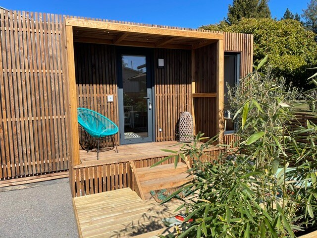 Situado sob carvalhos e em um local tranquilo, convidamos você a descobrir nosso charmoso estúdio novo de 40m2, idealmente localizado entre Arcachon e Cap Ferret. Este estúdio, espaçoso e confortável, está equipado com uma cozinha moderna, ar condicionado reversível e um espaço de trabalho equipado com uma conexão de fibra. Uma vaga de estacionamento está à sua disposição com a possibilidade de recarregar seu veículo elétrico.