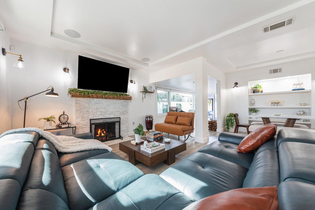 Mergulhe no sofá de couro sob uma janela panorâmica triangular de madeira e admire a arte e os tapetes coloridos que preenchem esta casa de estilo espanhol. Do lado de fora, dê um mergulho na piscina compartilhada, relaxe no pátio ensolarado ou reúna-se ao redor da fogueira. Por favor, note que existe uma casa de hóspedes no quintal. O quintal é uma área comum entre os hóspedes. A piscina é pequena, com apenas 3,5 pés de profundidade. Todos os hóspedes devem usar seu critério na prática do distanciamento social. Este espaço é uma casa de estilo espanhol clássico construído em 1932, mas foi totalmente renovado com tudo de novo. Estamos aninhados no coração do bairro histórico de Wrigley, em Long Beach. Uma cozinha totalmente equipada, lençóis limpos (hipoalergênicos), toalhas, jogos e Netflix esperam por você. Você encontrará café, chá, água e algumas guloseimas flutuando ao redor. Você também vai adorar a televisão LED inteligente 4k de 56 polegadas. Jato até o centro da cidade, Bixby Knolls, Cal Heights ou Belmont Shore em poucos minutos. Vários restaurantes culturalmente diversos com comida fantástica e cafés incríveis, espalhados pelo bairro a uma curta distância de carro. - A Casa Espanhola tem uma pequena casa de hóspedes completamente independente na parte traseira do quintal chamada "The Little Bungalow", que também é um airbnb. Fora isso, toda a casa principal da frente é inteiramente sua e privada! - A piscina e a lareira são áreas comuns, mas você pode usá-las a qualquer momento. - Você receberá um código de acesso temporário para a porta da frente antes da sua chegada. Observe que a porta trava automaticamente ao sair, portanto, você precisará inserir o código de acesso sempre que precisar. Você pode me ver no quintal às vezes, sinta-se à vontade para vir e dizer oi. Às vezes faço amigos e conversamos ao redor da fogueira, às vezes estou fora. No entanto, respeitarei sua privacidade e nosso nível de interação será orgânico. Caso você tenha alguma dúvida durante sua estadia, não hesite em me enviar uma mensagem! A acomodação fica em um bairro cultural e arquitetonicamente diversificado de Long Beach. Lojas e restaurantes ficam a cerca de cinco ou seis quarteirões de distância, de modo que é mais fácil andar de bicicleta, dirigir ou andar de carro em vez de caminhar até as atrações. A praia, o aquário, o Queen Mary e o centro de convenções estão a cerca de 2,5 a 3 km de distância. Algumas pessoas pedalam, mas eu recomendo dirigir/UBER/Lyft para chegar à maioria dos lugares. 1) Há um airbnb chamado "The Little Bungalow" localizado nos fundos do quintal. Isso é totalmente separado com sua própria entrada. 2) A Spanish House tem seu próprio estacionamento privado na entrada da frente. 3) O quintal principal é uma área comum, para todos os hóspedes compartilharem e usarem a piscina e a lareira. 4) O cara da piscina chega no início das manhãs de sexta-feira para manutenção de 15 minutos. 5) Os jardineiros vêm às quartas-feiras para manutenção de 1 hora.
