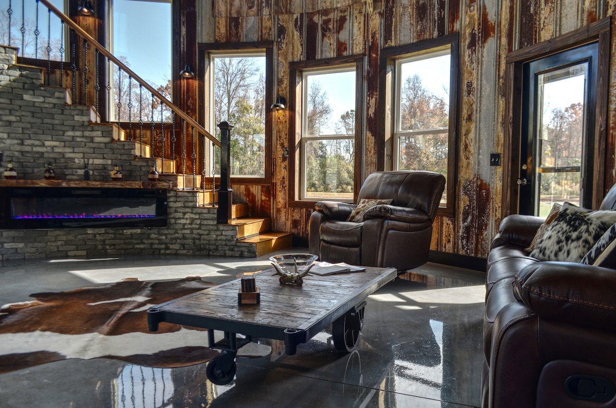Bangalô de luxo com 2 quartos, fogueira e deck de ioga (animais de estimação permitidos)
