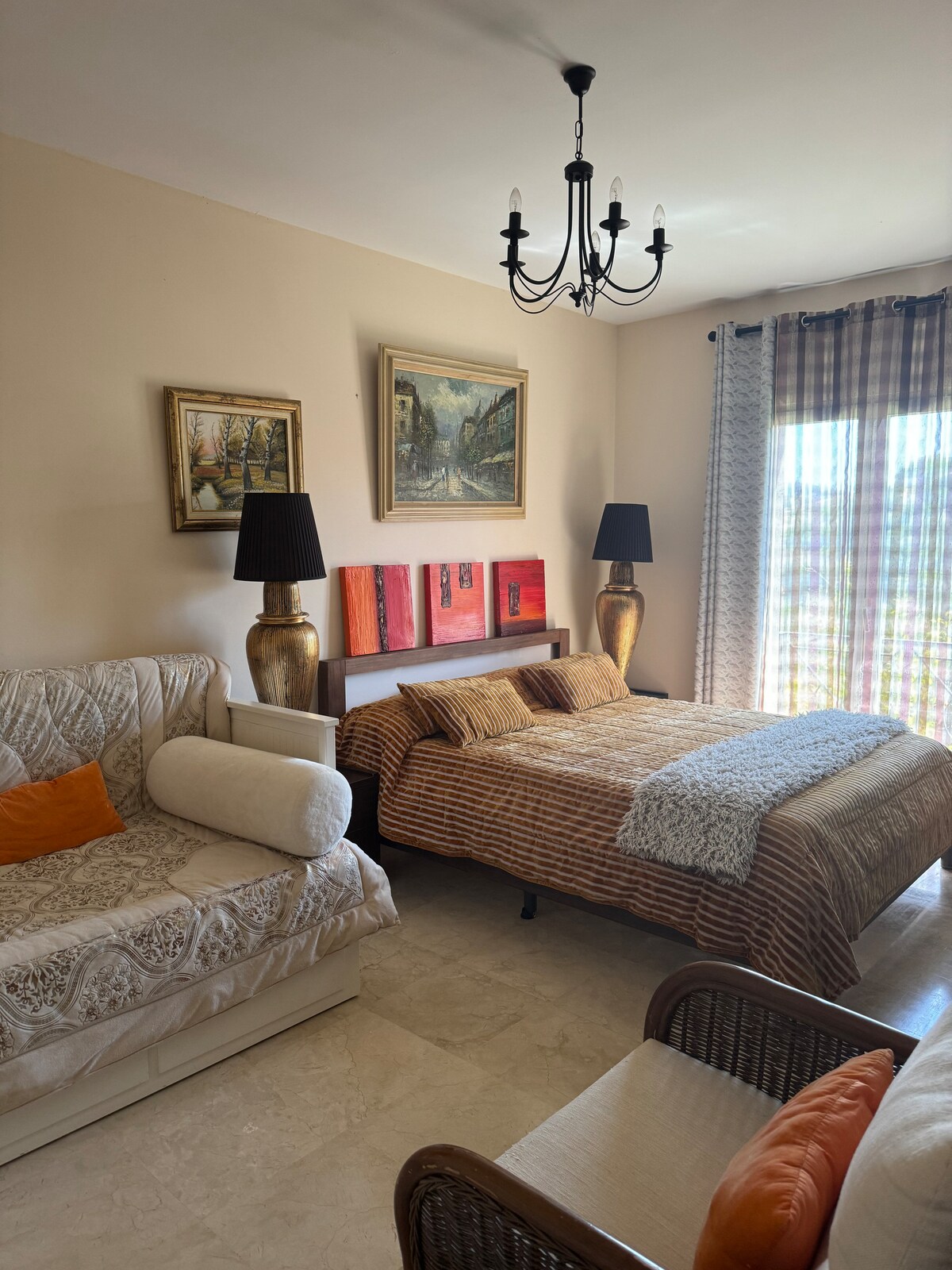 Acomodação aconchegante para duas pessoas, com tudo o que você precisa para passar uma estadia agradável como em casa, com tudo privado e 24 horas para atendimento ao cliente. No centro de Fuengirola e a 2 minutos da praia,e da estação de trem e ônibus, cercado por restaurantes e locais de lazer.