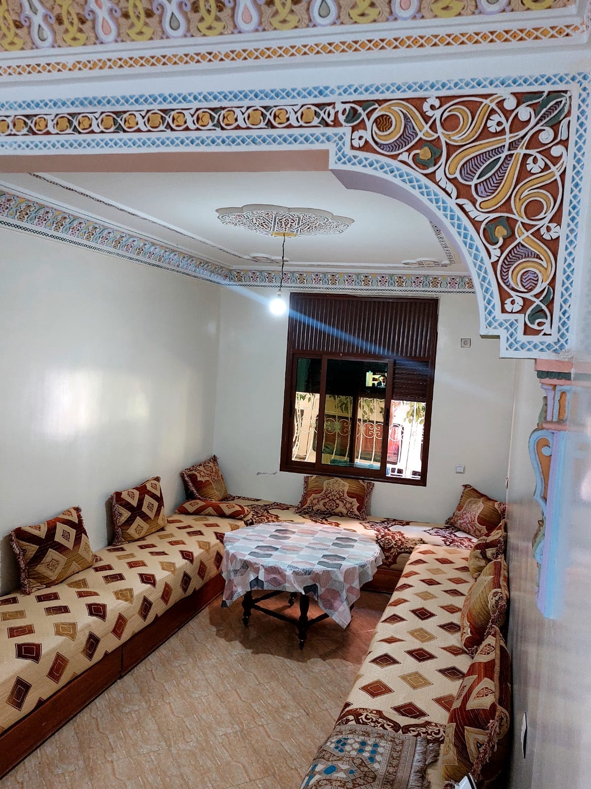Apartamento moderno e tranquilo em Beni Mellal, ideal para famílias ou grupos. Inclui uma grande sala de estar marroquina, uma pequena sala de estar americana, 2 quartos (acomoda 4 pessoas), cozinha equipada, chuveiro e 3 grandes varandas. Desfrute de Wi-Fi de fibra, ar-condicionado, máquina de lavar roupa, TV conectada com Netflix e novos eletrodomésticos. Localizado em um bairro tranquilo, perto de lojas. - fornecer-me um cartão de identificação é muito importante. - Proibido álcool na acomodação.