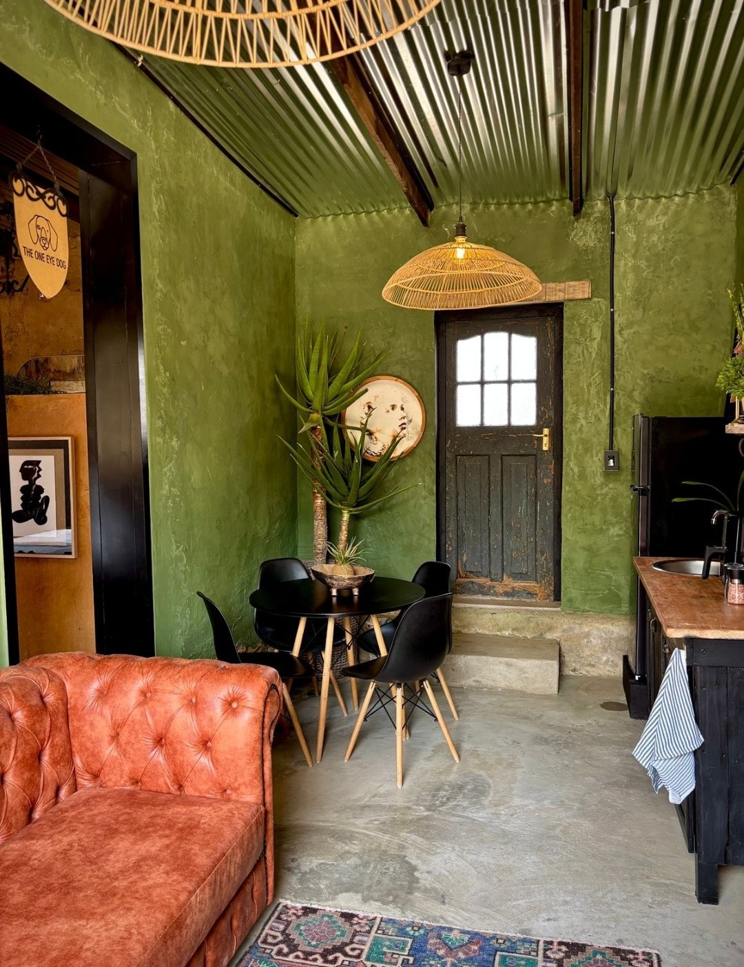 Little Oak Cottage sits on the Three Oaks smallholding in the Cape’s oldest West Coast town of Hopefield. It is owned and run by Elaine of EOS Getaway Experiences. This 1-bedroom, fully furnished, stand alone self-catering cottage is full of character, warmth and charm. The bedroom has a double bed with en-suite shower and the living area has an open plan lounge/kitchen. The separate entrance and off-street parking leads onto an outside braai area