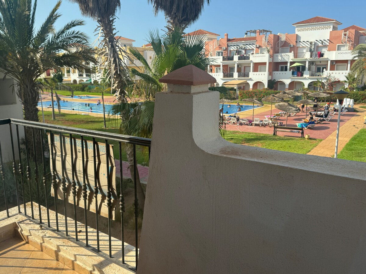 Duplex muito bonito para alugar em Saidia em uma residência segura com piscina. 3 quartos com ar-condicionado. 2 salões Estacionamento gratuito na residência. Área verde. Ao lado do parque aquático Alpamar.