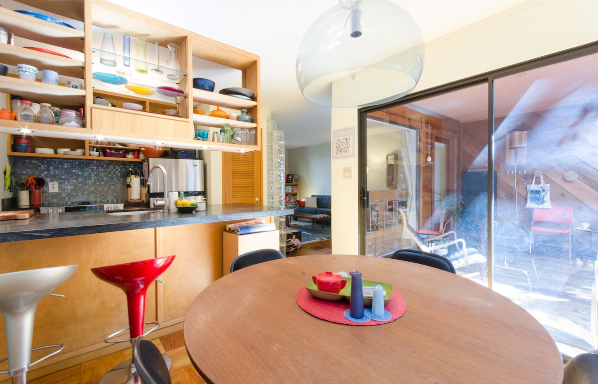 Apartamento tranquilo e espaçoso, moderno e luminoso de um quarto com internet sem fio de alta velocidade. Esta planta aberta privada e recém-renovada e cozinha de chef com eletrodomésticos de aço inoxidável é ideal para estadias longas. O apartamento dispõe de um deck ensolarado fora da cozinha e quintal para jantar ou relaxar. Localização central em um bairro arborizado. UC Berkeley e BART em curta distância. Tome seu café da manhã em um deck banhado pelo sol e, à noite, aconchegue-se junto à lareira interna.