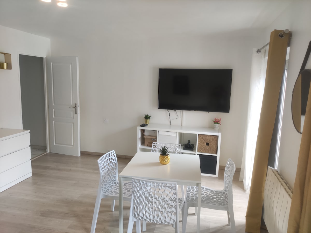 DOMAINE – Centro do vilarejo Apartamento espaçoso para duas pessoas, localizado em um condomínio pequeno e tranquilo, perto de lojas e comodidades. 🚍 Acesso direto a Grenoble através da linha de ônibus TAG 15 (parada Verdun Préfecture) 🍞 Lojas ao pé do edifício: supermercado, padarias, catering, restaurante italiano Roupa de cama🛏️ nova para um sono tranquilo 📶 Conexão de fibra óptica de alta velocidade 📺 Smart TV de 146 cm para suas noites relaxantes Bem-vindos ao lar!