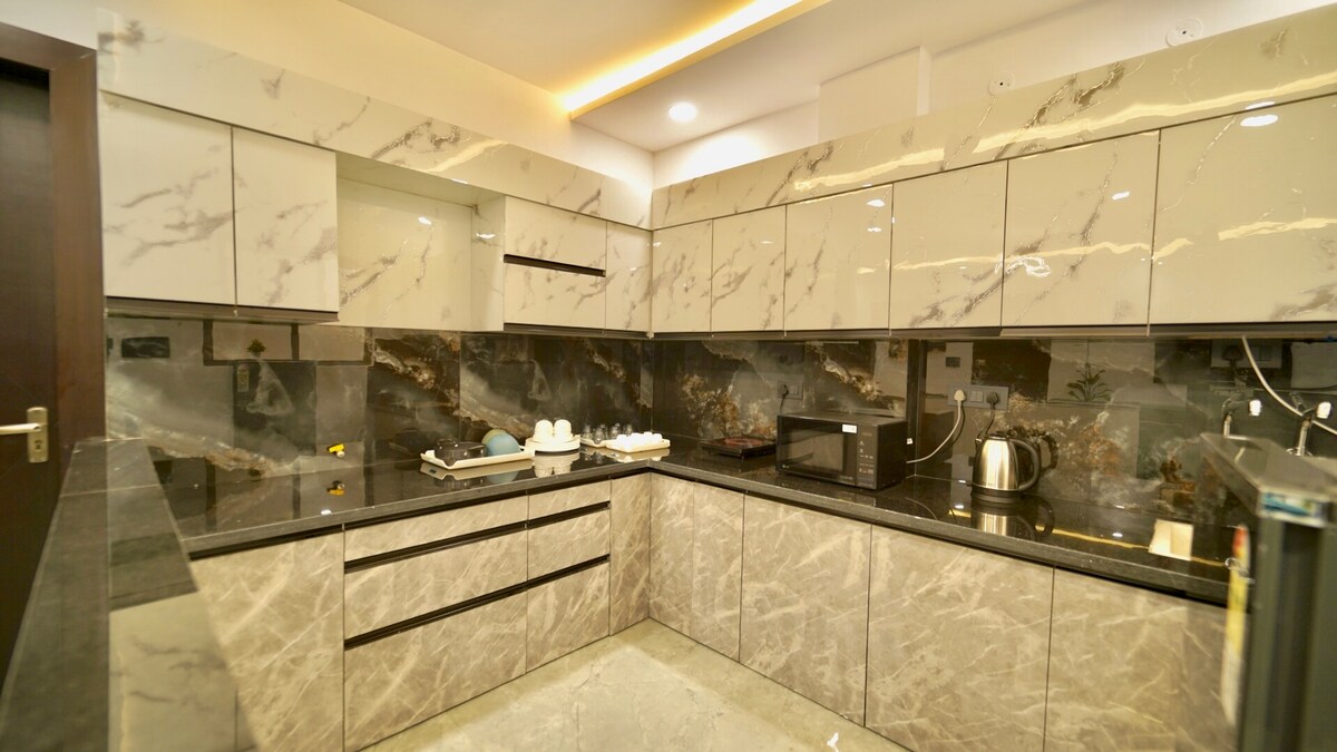 Desfrute de uma experiência elegante neste lugar com localização central. Espaçoso e elegante 3BHK perfeito para famílias, amigos e festas relaxantes, ou viajantes de negócios. Desfrute de uma sala de estar aconchegante com TV inteligente, quartos confortáveis, banheiros de luxo e uma cozinha elegante e totalmente equipada. O espaço é projetado com decoração moderna, iluminação suave e todos os itens básicos para uma estadia relaxada e de alto conforto. Wi-Fi rápido, ar condicionado em todos os quartos e uma vibe adorável para hospedar, relaxar ou apenas descontrair com estilo.