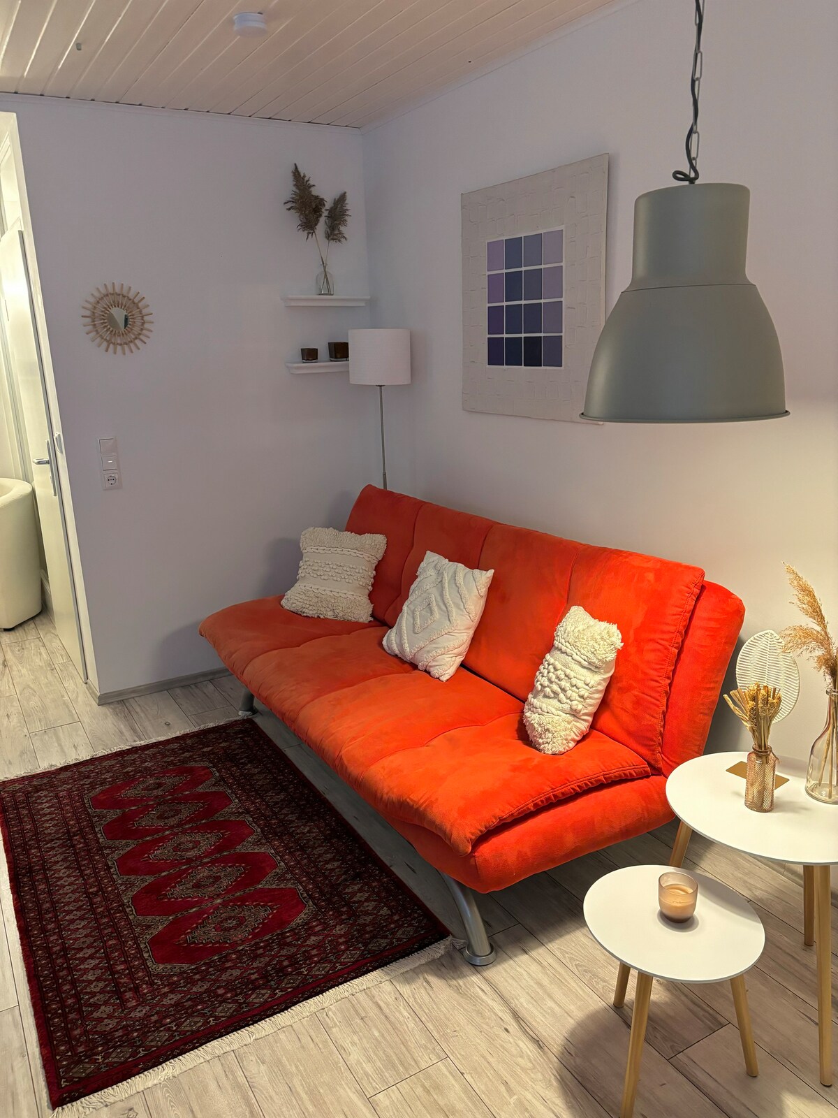 Conosco, você mora em um apartamento luminoso e amigável no sótão que exala um toque especial com uma atmosfera agradável com seus pisos de madeira de alta qualidade. O apartamento é composto por dois quartos, uma sala de estar, uma pequena cozinha, banheiro e corredor. Quer você venha até nós como uma família, amigos, casal, paz e tranquilidade ou colegas, eu preparo os quartos o mais confortavelmente possível. Se você vem com 5 pessoas, uma pessoa dorme na área residencial, mas também confortavelmente com um bom colchão.