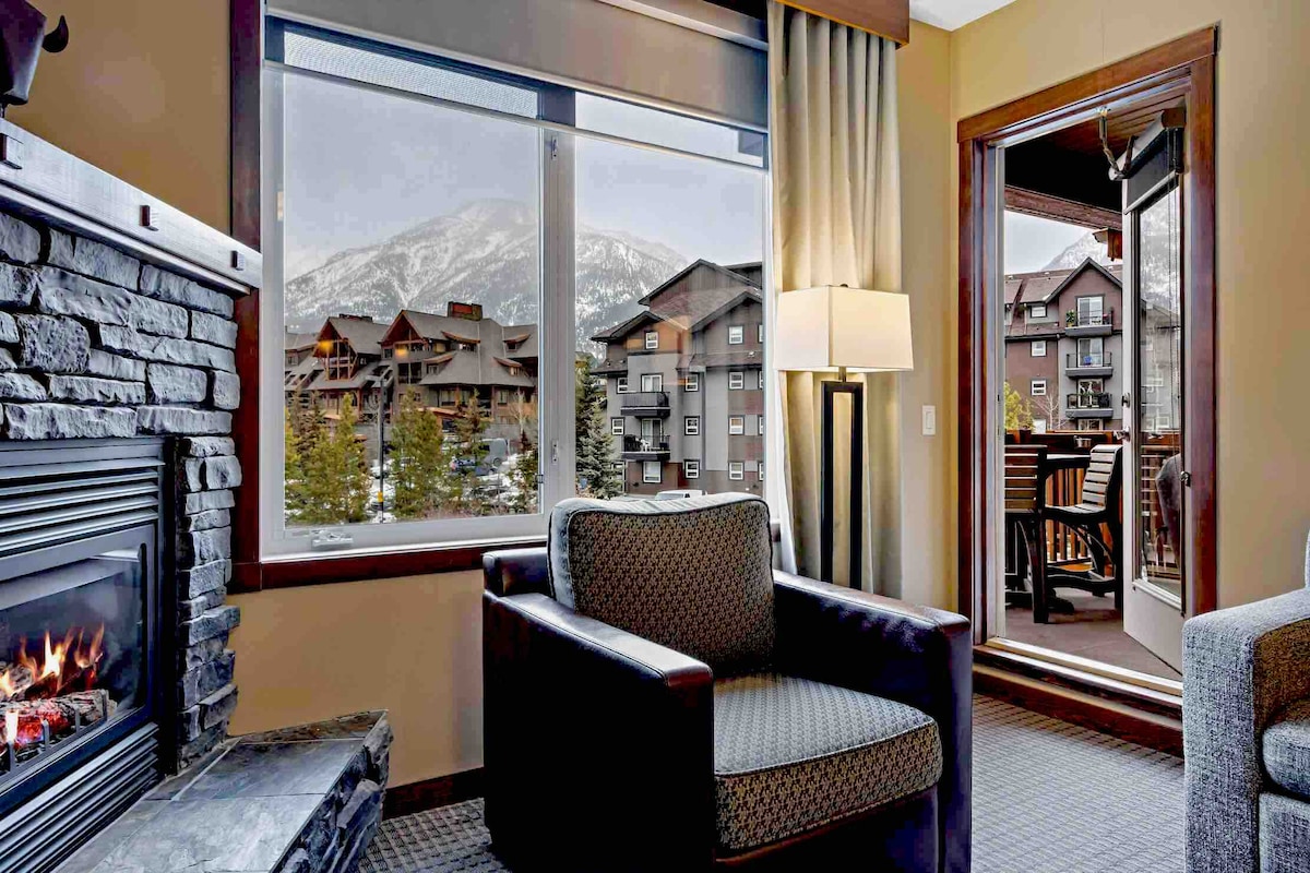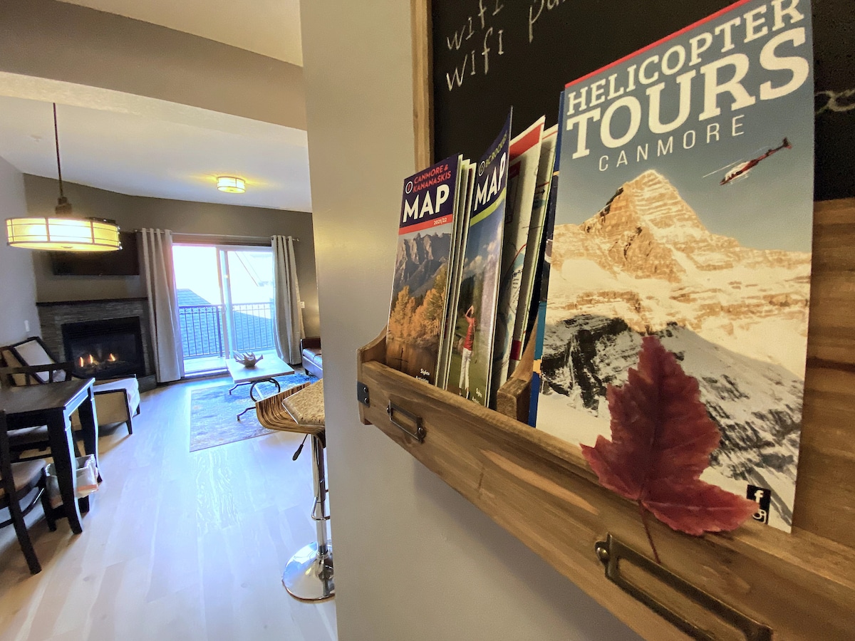 Com vista para a linda montanha Rochosa da varanda, quarto e sala de estar, este novo apartamento de um quarto reformado oferece todas as comodidades que você esperaria. O quarto tem uma cama king confortável. Na sala de estar, há um sofá-cama de alta qualidade para acomodar hóspedes extras. A lareira proporciona um ambiente acolhedor. Wi-Fi gratuito e TV inteligente com Amazon Prime Video e Shaw TV para o seu lazer. Cozinha totalmente equipada e banheira de imersão profunda com chuveiro podem fazer você se sentir em casa!