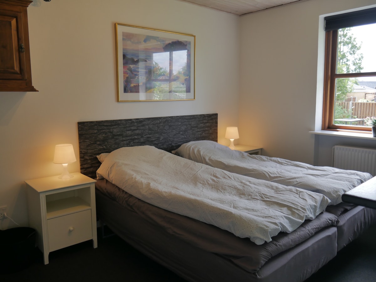 Bairro tranquilo, a 13 km de Billund. Os quartos também podem ser usados para pernoite antes ou depois de um voo. Oferecemos 1 quarto - com cama de casal, poltrona, mesa e TV, e Uma pequena cozinha com mesa de jantar, geladeira, fogão, microondas, cafeteira, chaleira e louças. Lavamos a louça diariamente para você. Você será sempre o nosso único hóspede e, portanto, terá acesso à cozinha e ao banheiro com chuveiro. Nós falamos inglês e alemão. Até logo.