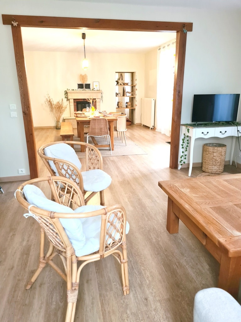 Acomodação elegante, nova, luminosa e funcional. Com 4 camas (duas camas de casal) no coração de uma vila da Borgonha, idealmente localizada a 5 minutos das rodovias A38 e A6. Calma absoluta e muita vegetação. Lojas de conveniência a 5 minutos de carro. Uma sala de estar com cozinha aberta equipada e acesso ao terraço. Banheiro e toalete separados no andar térreo. No andar de cima, um grande espaço para dormir, tipo loft, com rede de acesso para relaxar. Estacionamento gratuito no local.