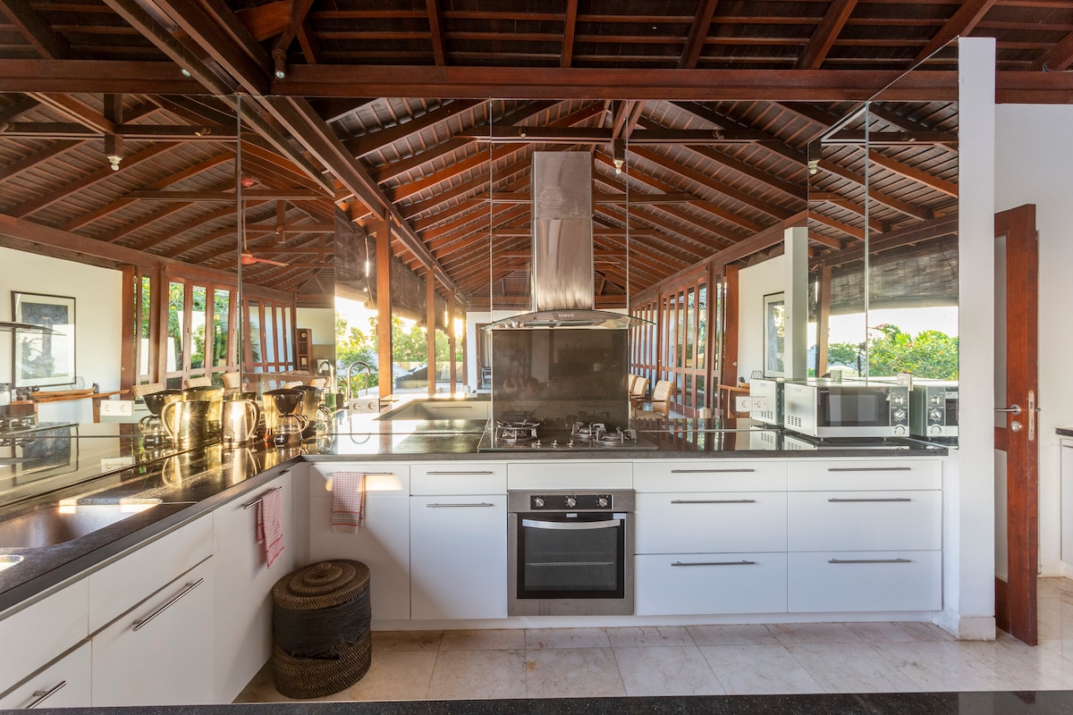 3 quartos de tamanho generoso, todos com banheiros privativos e vista para a piscina. A Villa é completamente privada, totalmente fechada, com fortes ventiladores de ar-condicionado e teto em todos os quartos. A cozinha do chef está totalmente equipada, as smart TVs têm assinaturas Netflix e Wi-Fi rápido para todas as áreas. A área externa possui um quintal gramado e piscina privativa com lounge rebaixado e cama de dia embutida. Esta vila é perfeita para grupos ou famílias que buscam o máximo em luxo à beira-mar.