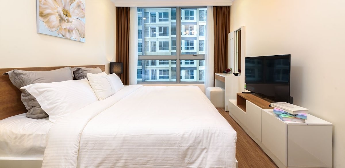 Adequado para viagens de negócios ou estadias de longa duração, também conveniente para viajar pela cidade de Ho Chi Minh, MAS AINDA ECONOMIZANDO/ Apartamento moderno e confortável com grande parque à beira do rio (total acima de 42ha)/ 5 min do centro financeiro do Vietnã e do famoso destino turístico (Dist.1)/ Transporte conveniente, fácil de acessar táxi, Grab; 8km até o Aeroporto Internacional Tan Son Nhat/ Shopping, muitos tipos de loja de alimentos, hospital ao lado; academia gratuita; piscina; Golfe, tênis incluem, parque verde de 14ha à beira do rio para caminhada, corrida