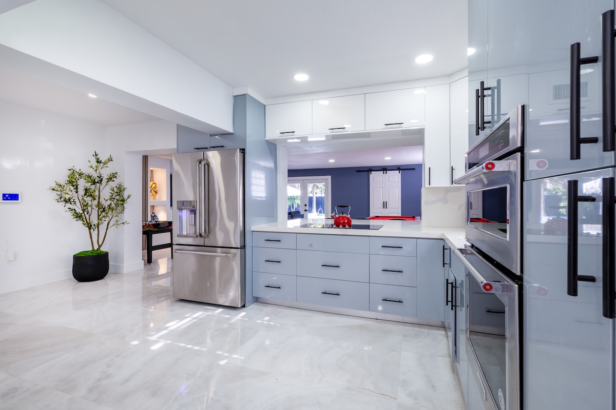 Bem-vindo a uma nova vila no norte de Miami, perfeita para pequenos grupos que procuram um lugar para relaxar! A acomodação tem tetos de 3 metros e uma espaçosa área de jantar com vista para o quintal, que inclui uma piscina aquecida, minigolfe, uma cesta de basquete e uma pérgula com uma lareira. A cozinha vem abastecida com tudo o que você precisa para cozinhar em casa. Muito espaço para relaxar, tanto no interior como no exterior. Verifique a localização da propriedade no Google Maps e no Street View para garantir que ela esteja de acordo com seus planos.
