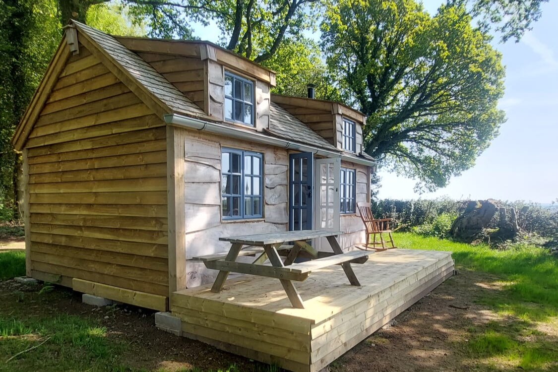 Cabana rústica com banheira de hidromassagem e vista para Exmoor