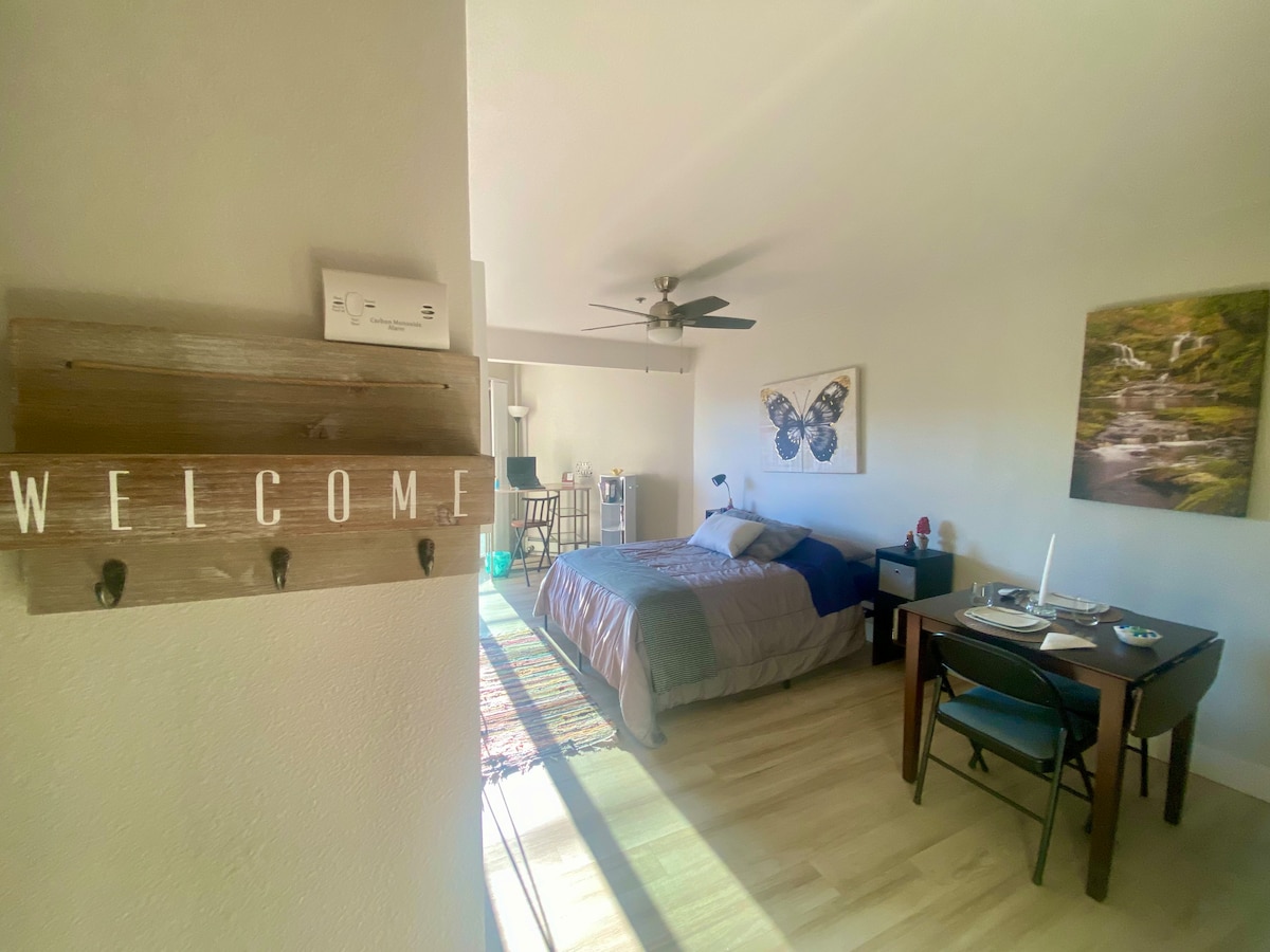 Apartamento aconchegante perfeito para apenas uma ou duas pessoas fazendo um ponche: chuveiro enorme, lareira, toca-discos, TV Roku (Hulu/Netflix) e cama mais confortável! ★Caminhe até OTC; curta viagem de carro Dwntwn, CC, Pikes Peak, USAFA, UCCS ★QUINTAL: banheira de hidromassagem, lareira, churrasqueira, alto-falante, jogos de quintal, bicicleta Schwinn ★ACADEMIA: Peloton, esteira e elíptica. Pule cordas, sinos de chaleira, alto-falante, TVRoku e MUITO MAIS! ★MESA: impressora, WI-FI rápido, Mini G00gle e coqueteleiro ★FAMÍLIA: PackNplay, brinquedos, cadeira alta ★ Kitchenette: fogão, liquidificador e muito mais!