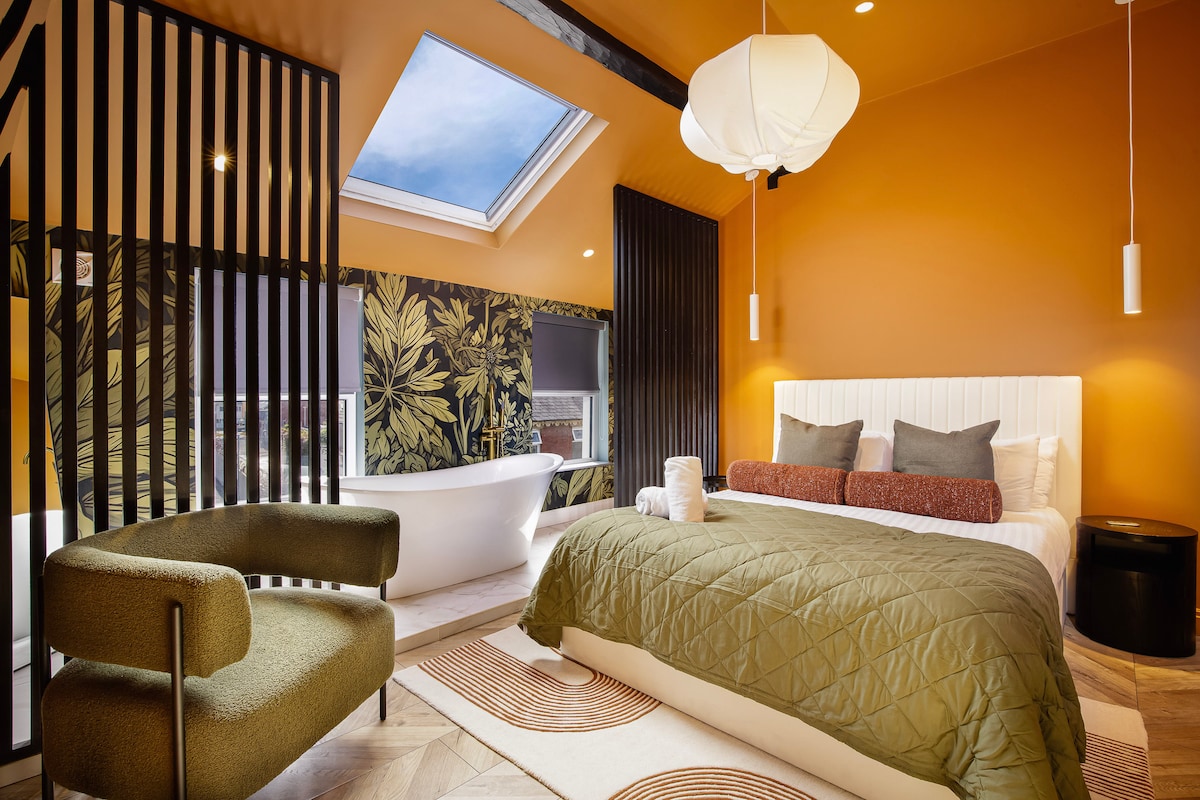 APARTAMENTO LOFT PENTHOUSE EXCLUSIVO COM VISTA PARA O MAR Apartamento penthouse personalizado, vista para o mar, vista para o parque, varanda, lareira, cinema de 200”. Apartamento executivo premium em estilo loft de Blackpool. Desfrute de vistas ininterruptas para o mar e para o parque a partir da sala de estar/varanda. Cozinha e banheiro com chuveiro de hidromassagem. Experiência de cinema surround sound de 200 polegadas. Lareira de madeira real e pisos de madeira para uma experiência de loft única. Wi-Fi 5G ilimitado, fechaduras sem chave, aquecimento central e ponto de carregamento EV.